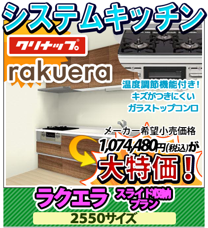 クリナップ ラクエラ I型 スライド収納プラン 2550サイズ(写真仕様)